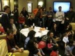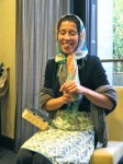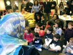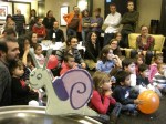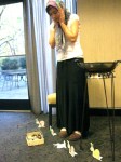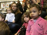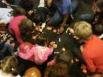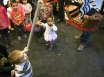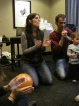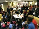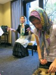 Una castanyera molt ben vestida i acompanyada ha visitat avui a la Comunitat catalana de Washington. La senyora castanyera ha explicat als nens i nenes la història de com recollia castanyes i les venia calentetes a la gent que li en volia comprar… això sinó s’equivocava i collia caragols.